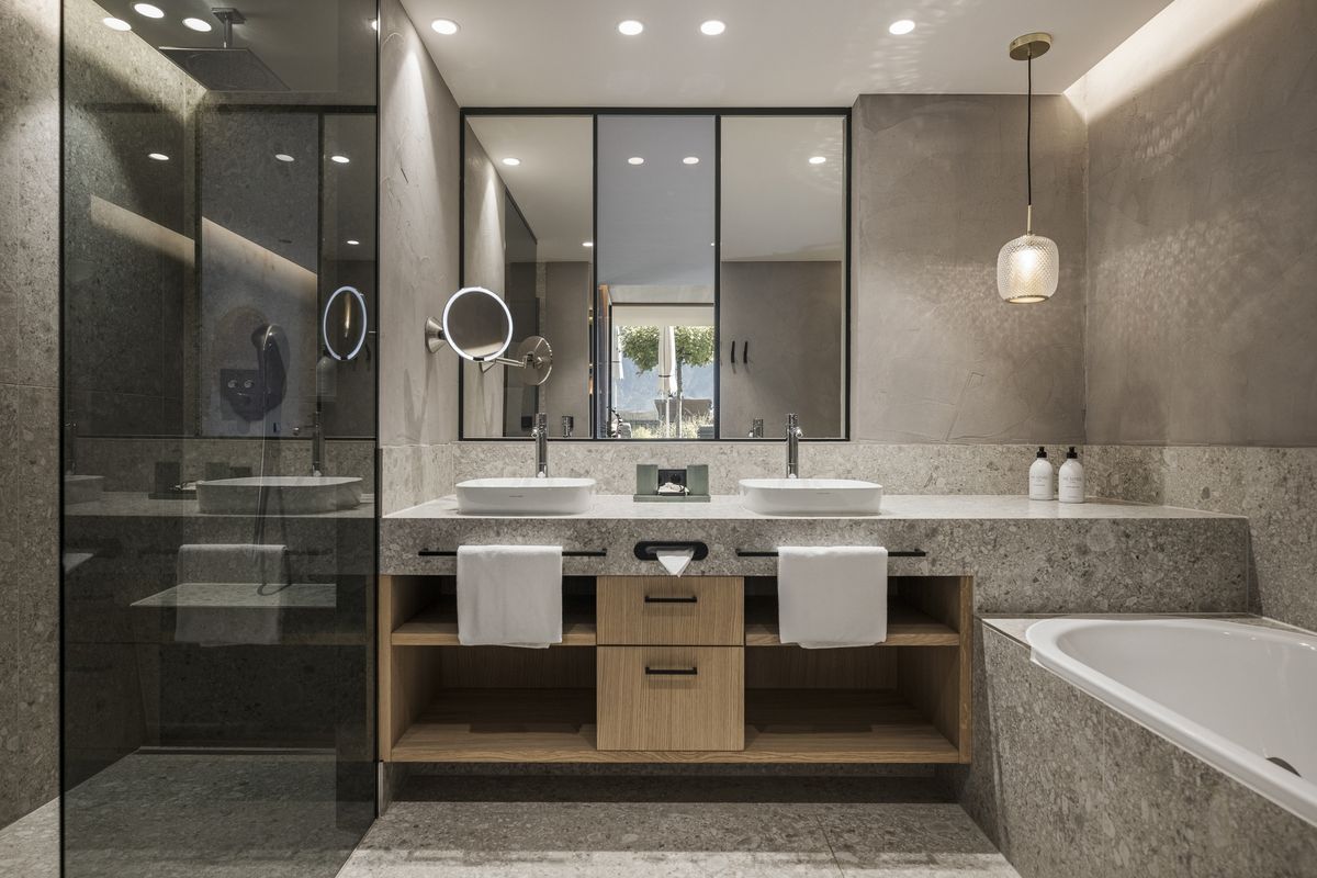 Genießt unser neues Doppelzimmer Freiraum inklusive Schwarz Halbpension - teilweise mit Terrasse und direktem Zugang zum Infinitypool
