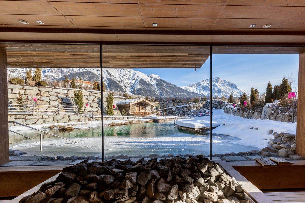 - Zugang zum Saunadorf mit zahlreichen Saunen, warmem Pool und Bergsee